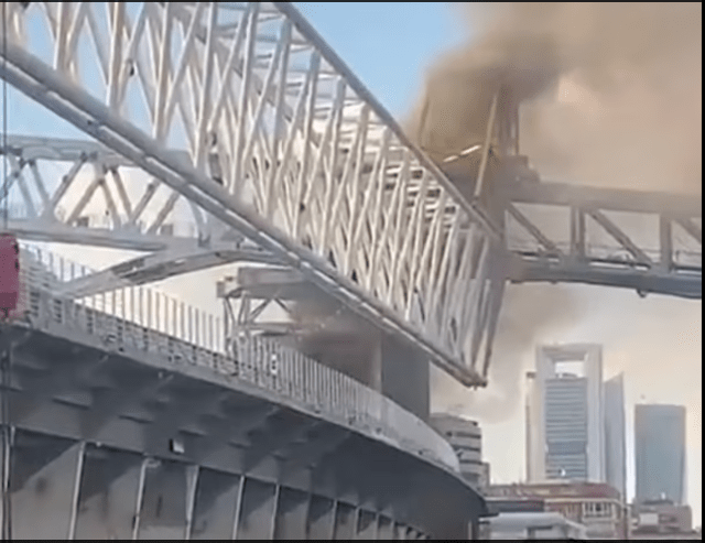 Real madrid's santiago bernabeu stadium catches fire amid £600million renovation works.
